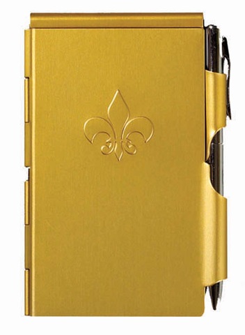 A static picture doesn't do the product justice. When you remove the pen on the right, the metal notepad flips open.